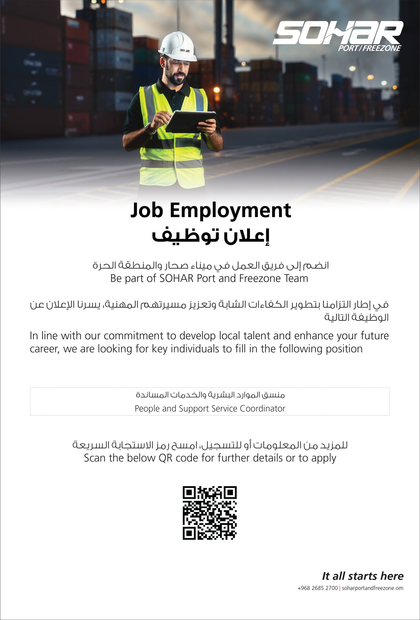 ميناء صحار والمنطقة الحرة - وظيفة شاغرة ( منسق الموارد البشرية والخدمات المساندة )