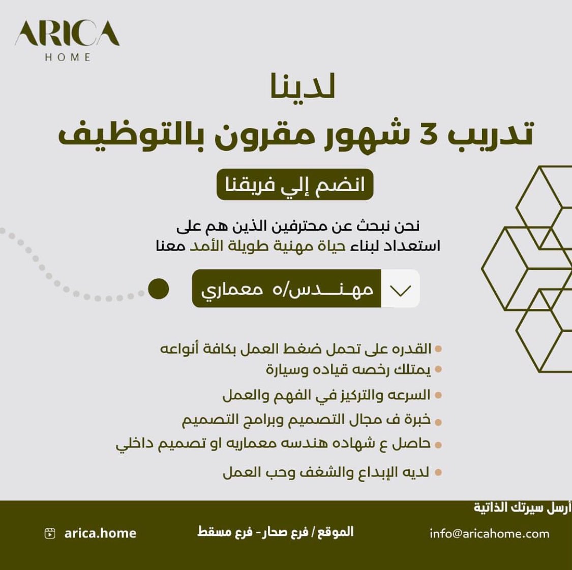 شركة أريكا هوم - فرص تدريب 3 شهور مقرون بالتوظيف ( مهندس /ة معماري )