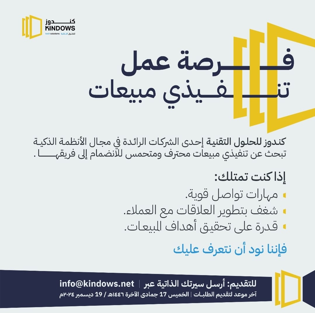 شركة كندوز للحلول التقنية - وظيفة شاغرة ( تنفيذي مبيعات )