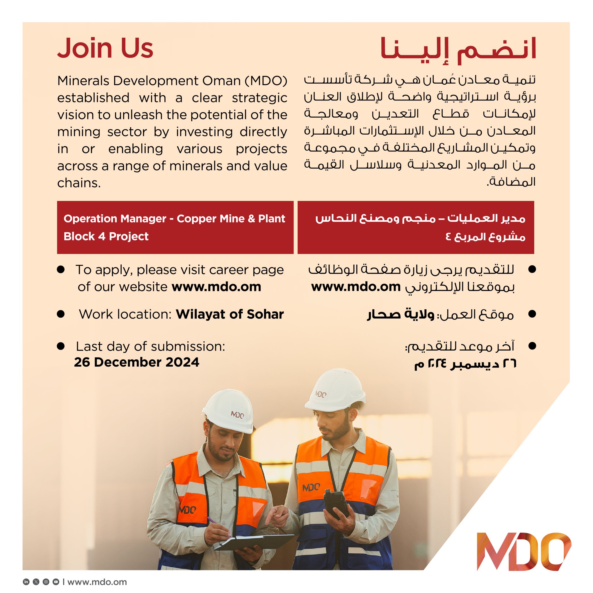 شركة تنمية معادن عمان - وظيفة شاغرة ( مدير العمليات )