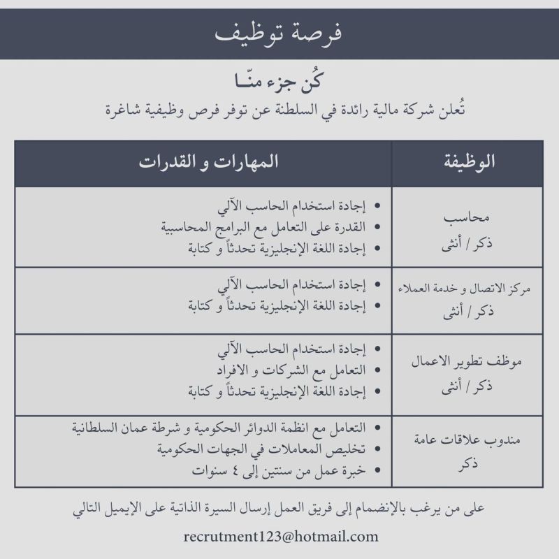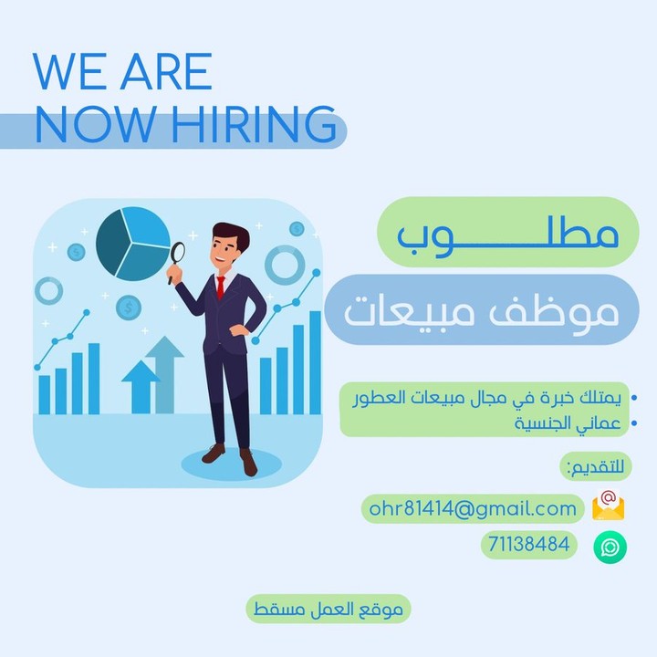 احدى الشركات في مسقط - وظيفة شاغرة ( موظف مبيعات )