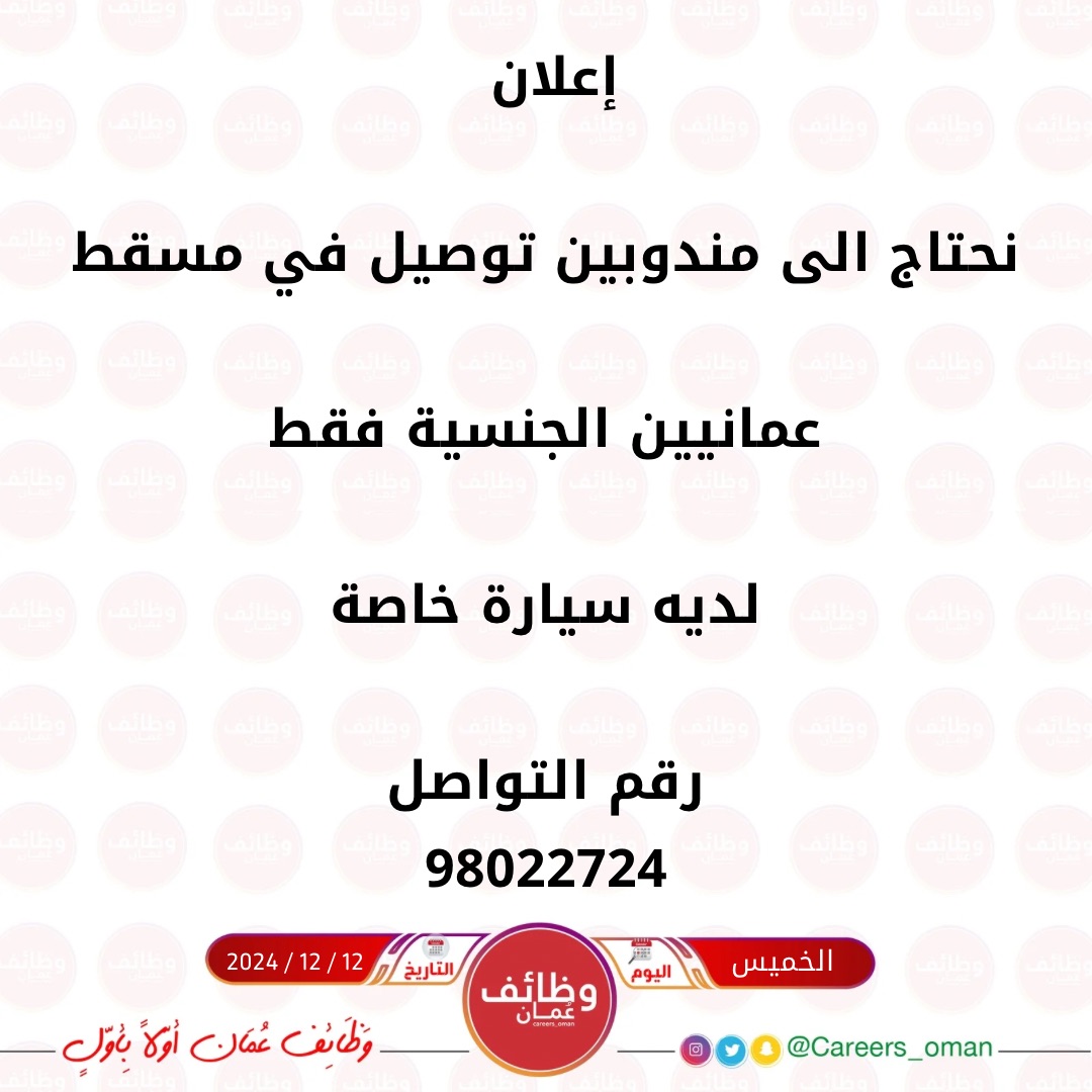 شركة توصيل في مسقط - فرص وظيفية ( مندوبين توصيل )