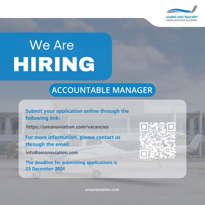 أكاديمية عمان للطيران - وظيفة شاغرة ( ACCOUNTABLE MANAGER )
