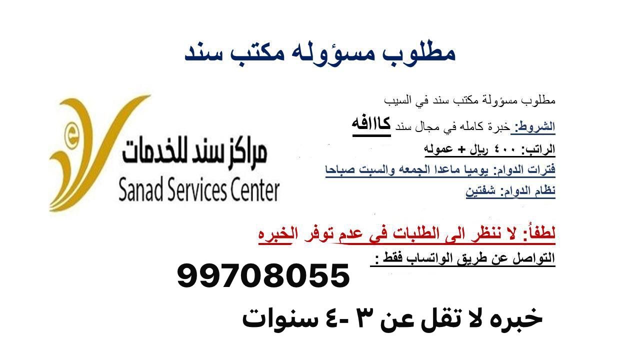 مكتب سند في السيب - وظيفة شاغرة ( مسؤولة مكتب سند )