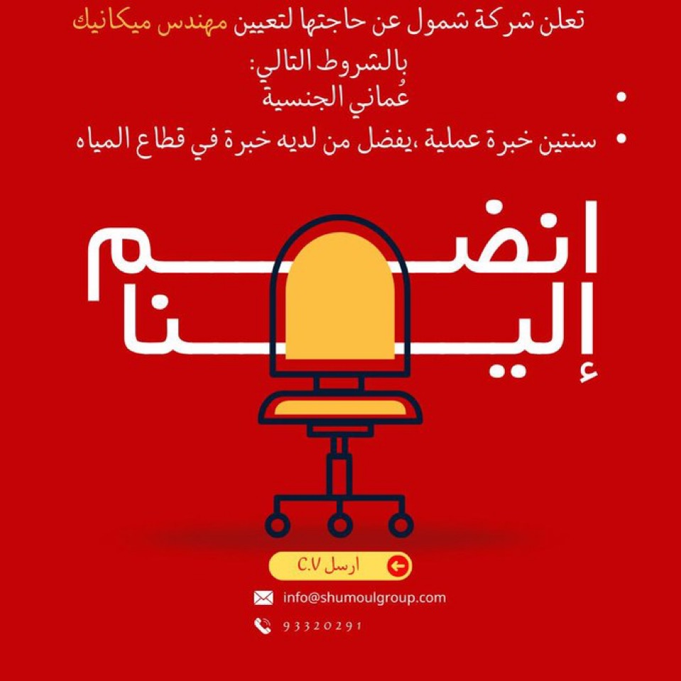 شركة شمول - وظيفة شاغرة ( مهندس ميكانيك )