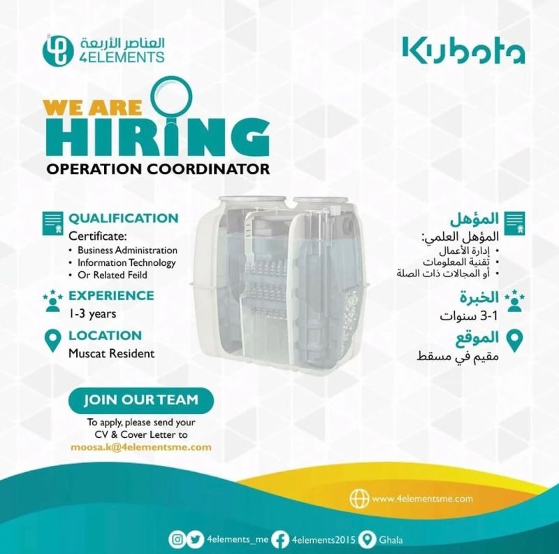 شركة العناصر الأربعة - وظيفة شاغرة ( OPERATION COORDINATOR )
