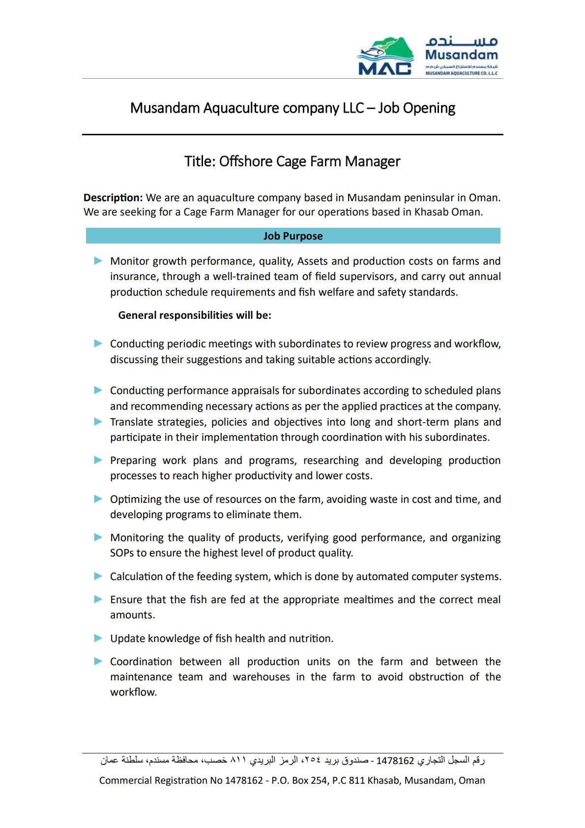 شركة مسندم للاستزراع السمكي - وظائف شاغرة