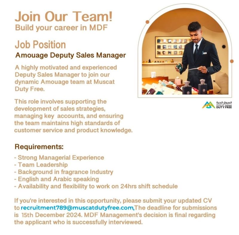 السوق الحرة - وظيفة شاغرة ( Amouage Deputy Sales Manager )