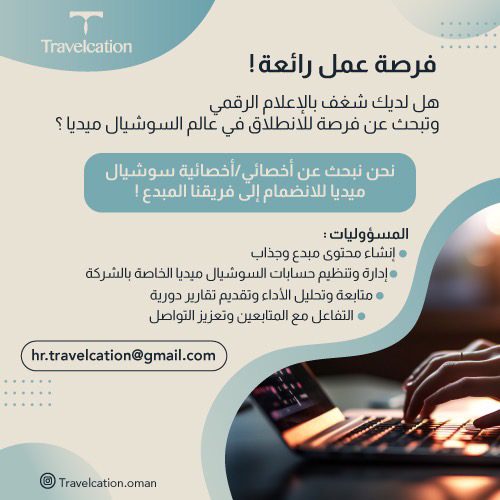 شركة Travel cation للسفر والسياحة - وظيفة شاغرة ( أخصائي/أخصائية سوشيال ميديا )
