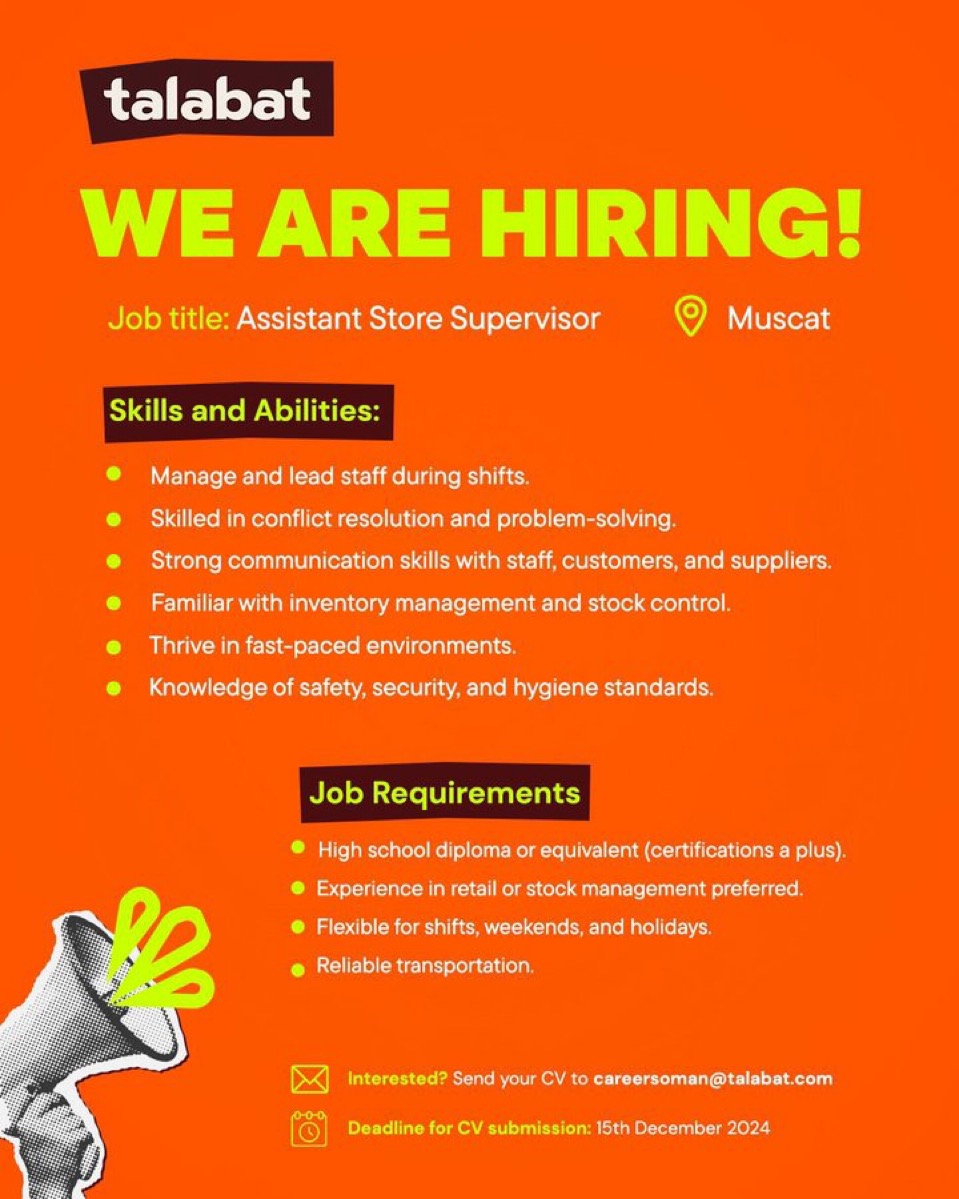 شركة طلبات - وظيفة شاغرة ( Assistant Store Supervisor )