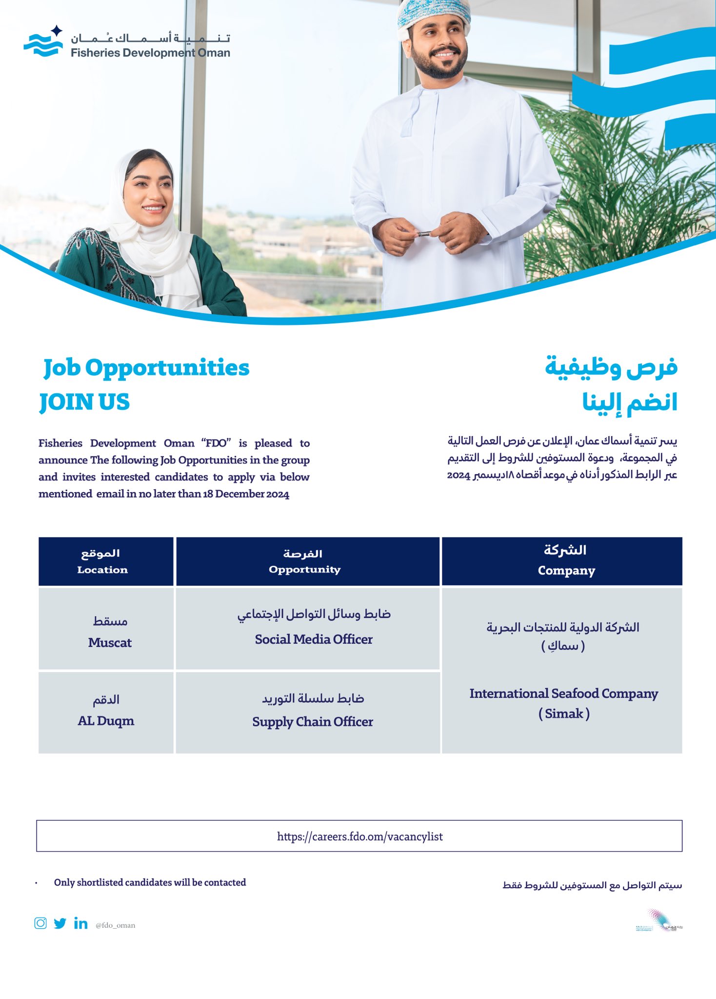 مجموعة تنمية أسماك عمان - فرص وظيفية