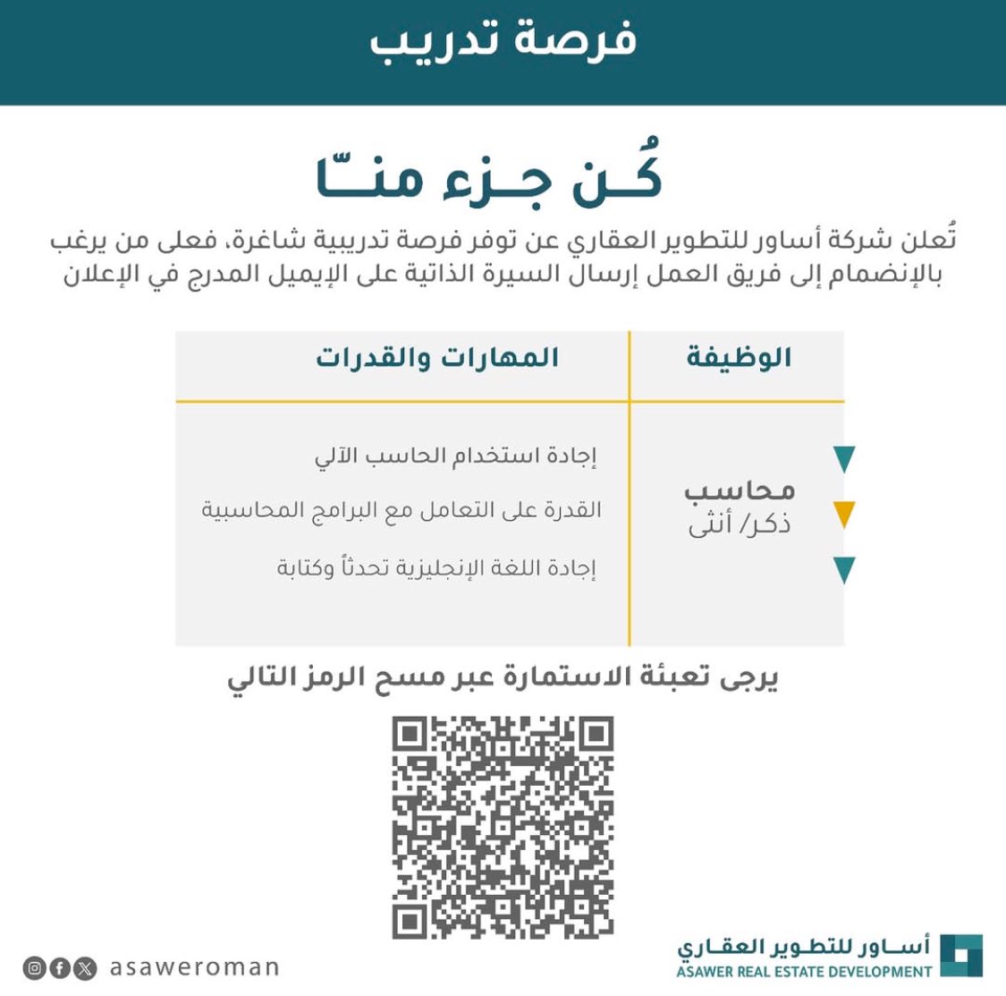 شركة أساور للتطوير العقاري - فرصة تدريبية في مجال المحاسبة