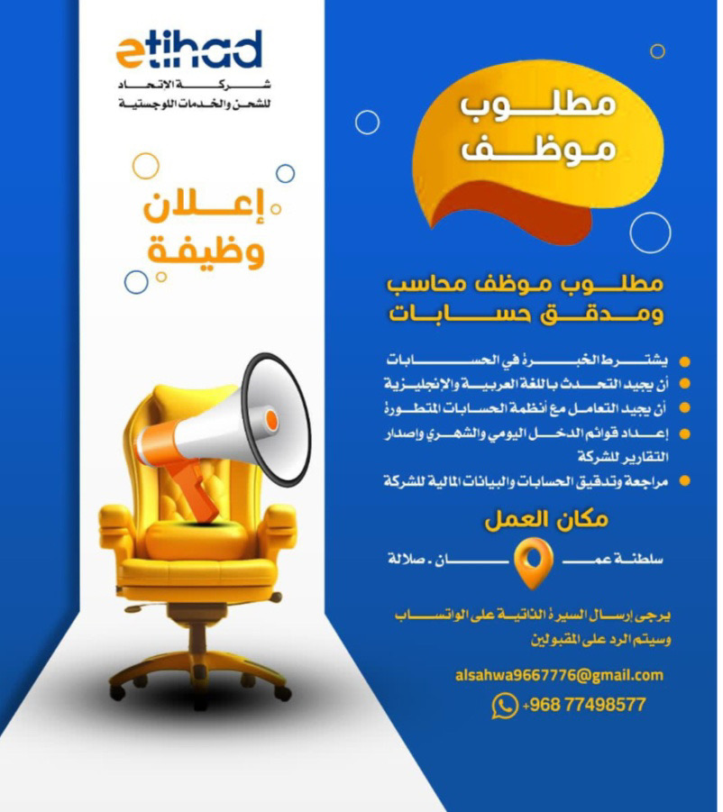 شركة الاتحاد للشحن والخدمات اللوجستية - وظيفة شاغرة ( محاسب ومدقق حسابات )