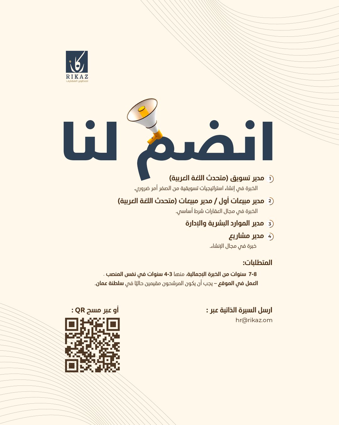 ركاز للتطوير العقاري - فرص وظيفية جديدة