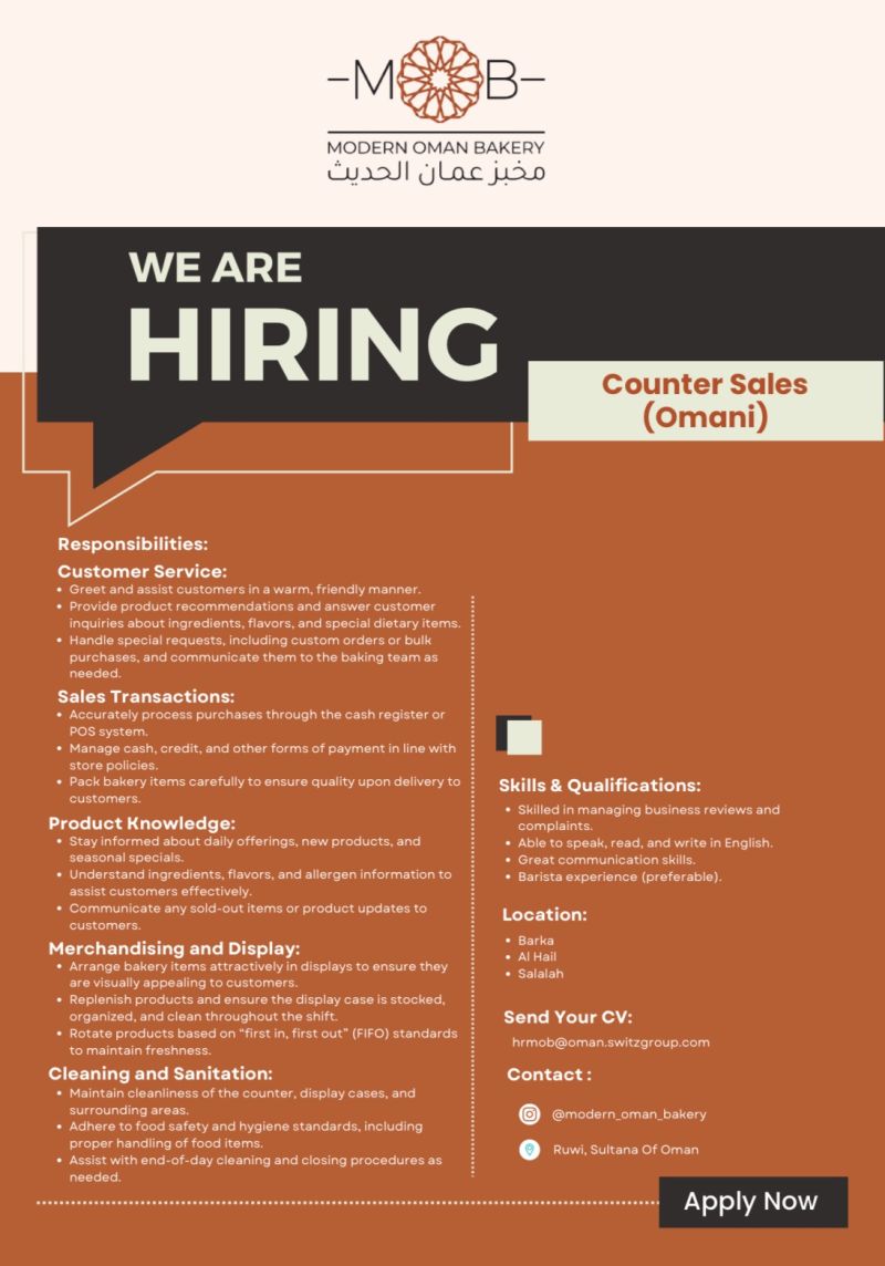 مخبز مسقط الحديث - وظيفة شاغرة ( Counter Sales )