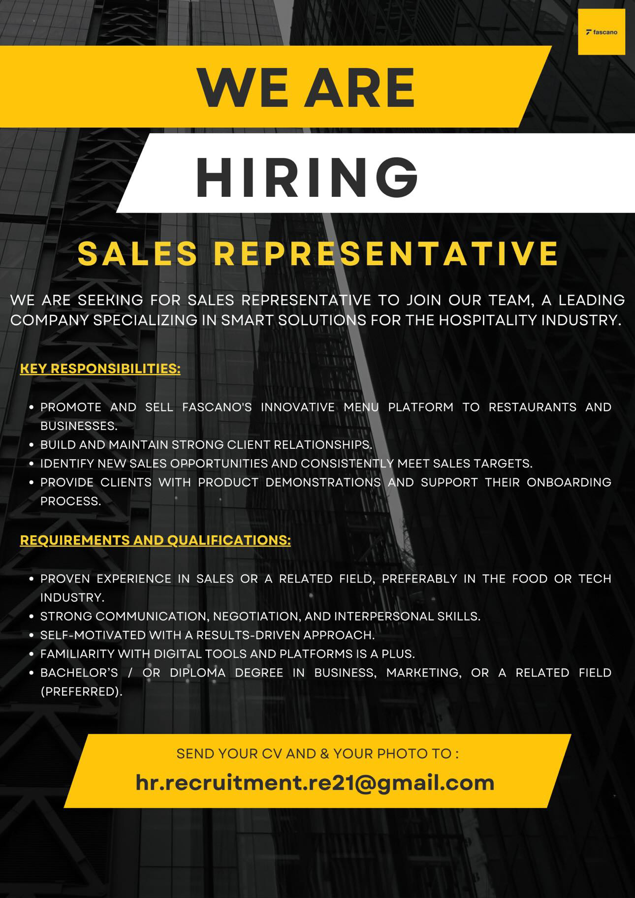 شركة رائدة متخصصة في الحلول الذكية - وظيفة شاغرة ( SALES REPRESENTATIVE )