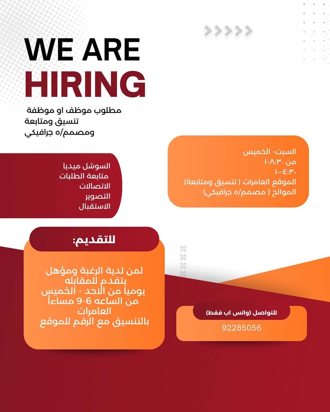 احدى الشركات الرائدة - وظيفة شاغرة ( موظف او موظفة تنسيق ومتابعة ومصمم/ة جرافيكي )