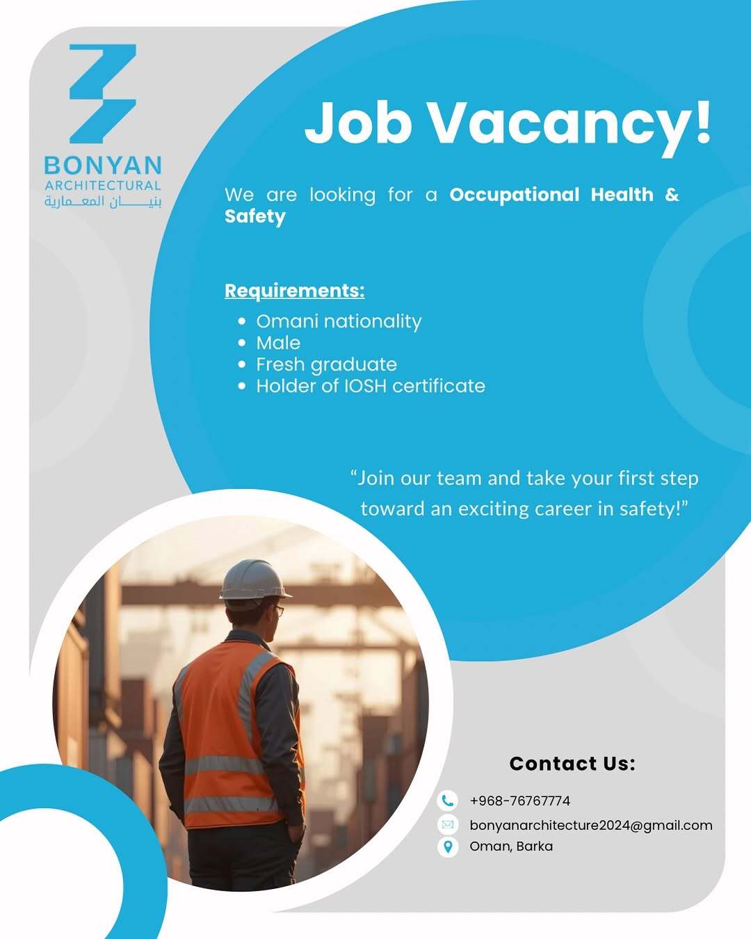 شركة بنيان المعمارية في بركاء - وظيفة شاغرة ( Occupational Health & Safety )