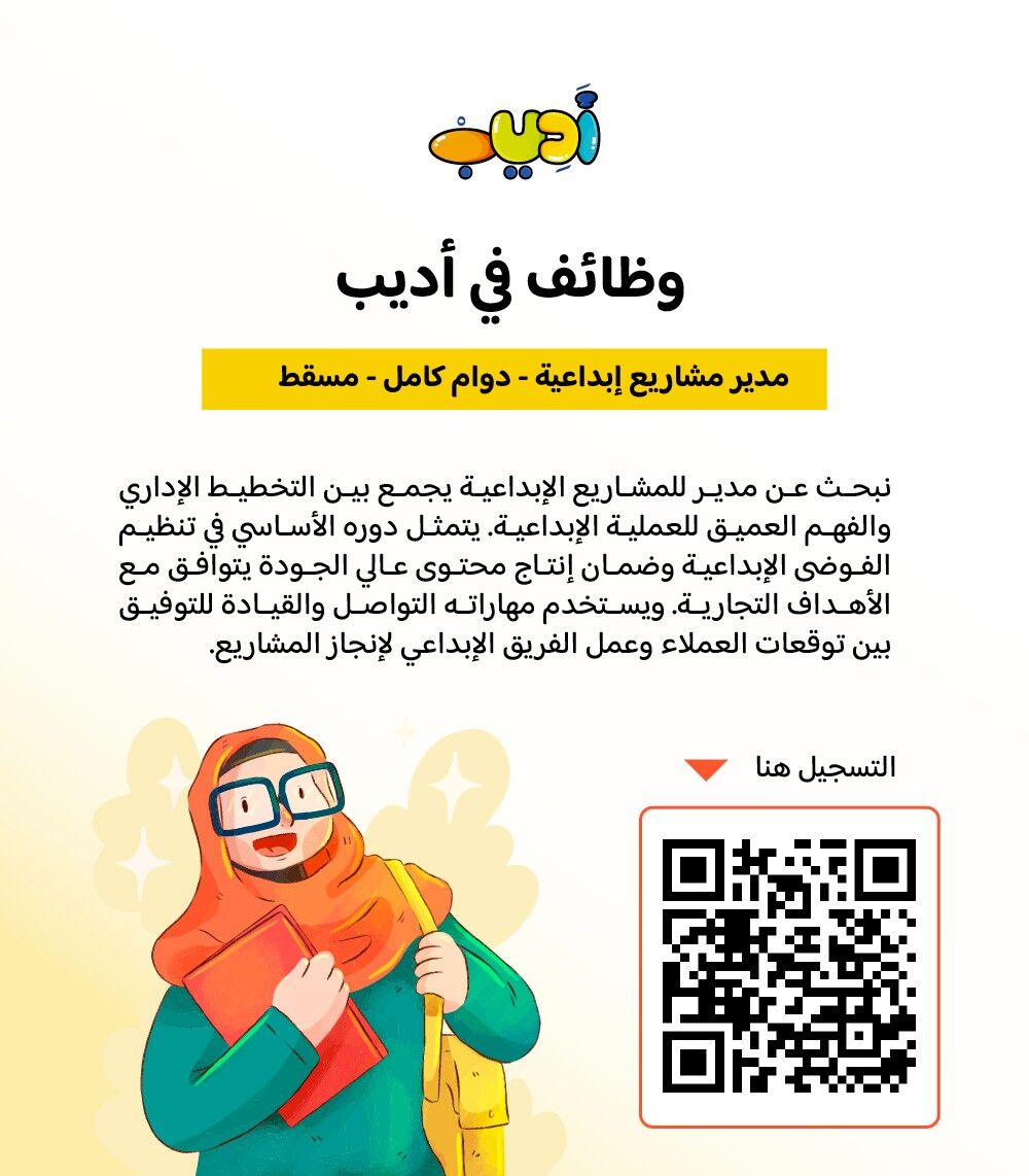 منصة أديب الرقمية - وظيفة شاغرة ( مدير مشاريع إبداعية )