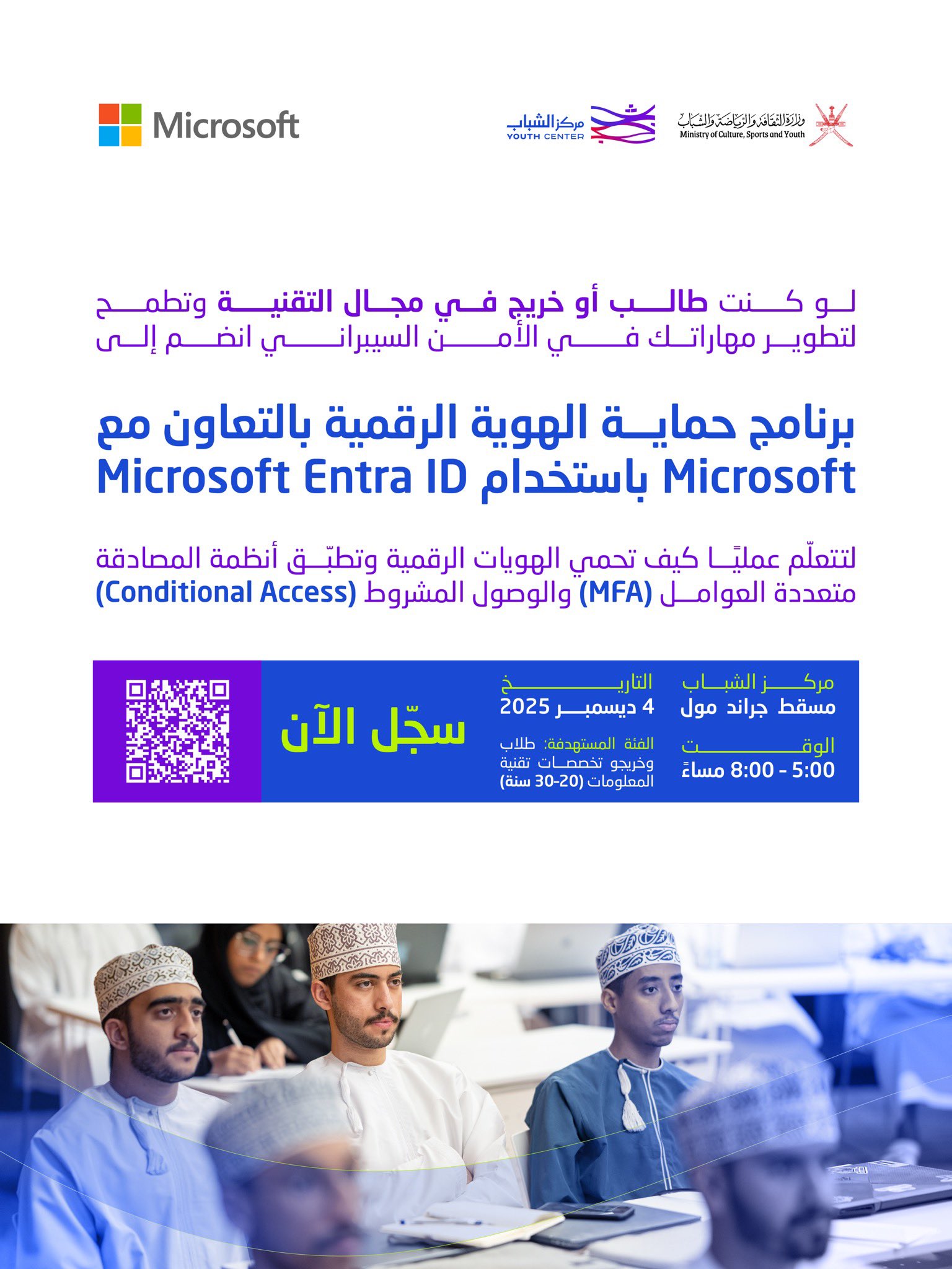 مركز الشباب – فرصة لطلبة وخريجي التقنية للانضمام إلى برنامج حماية الهوية الرقمية بالتعاون مع Microsoft