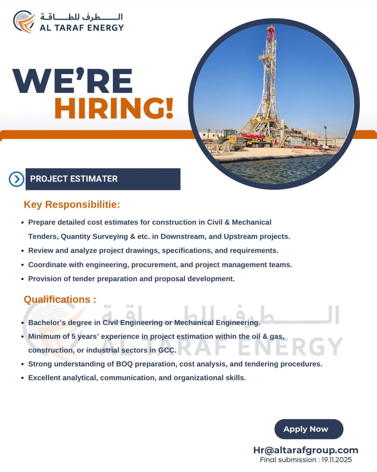 شركة الطرف للطاقة والأعمال - وظيفة شاغرة ( PROJECT ESTIMATER )