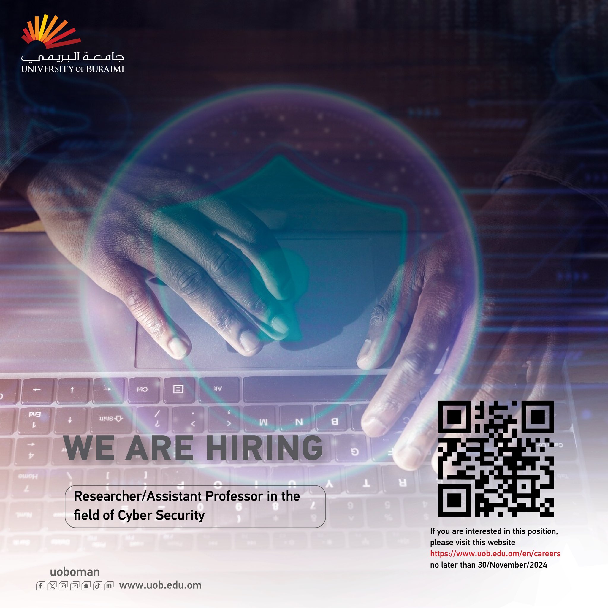جامعة البريمي - وظيفة شاغرة ( Researcher/Assistant Professor in the field of Cyber Security )
