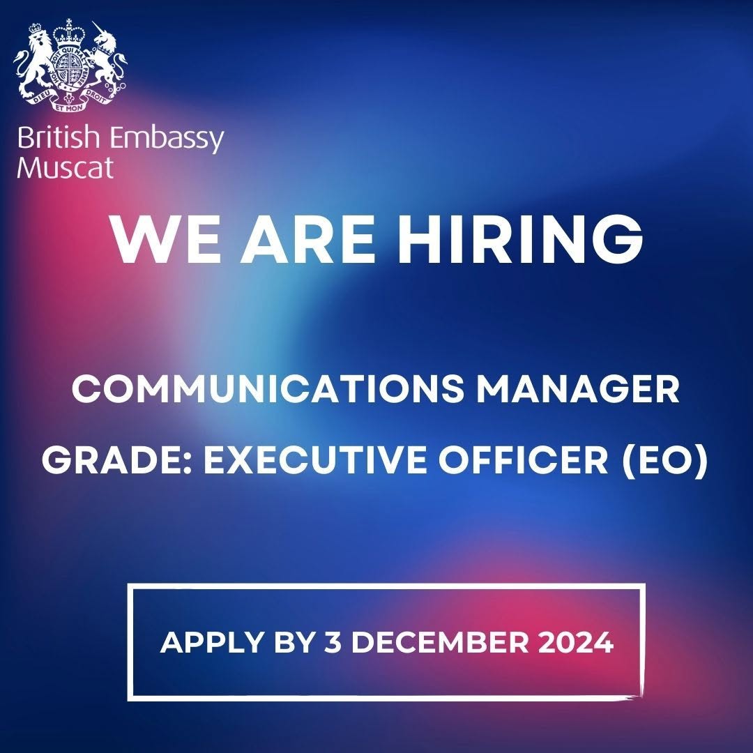 السفارة البريطانية بمسقط - وظيفة شاغرة ( Communications Manager (EO) )