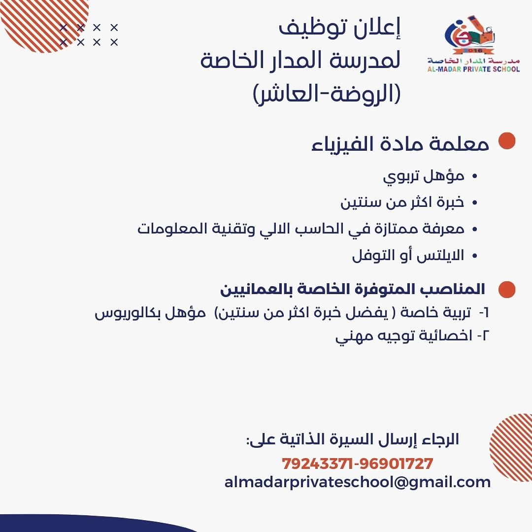 مدرسة المدار الخاصة في الخوض - فرص وظيفية جديدة