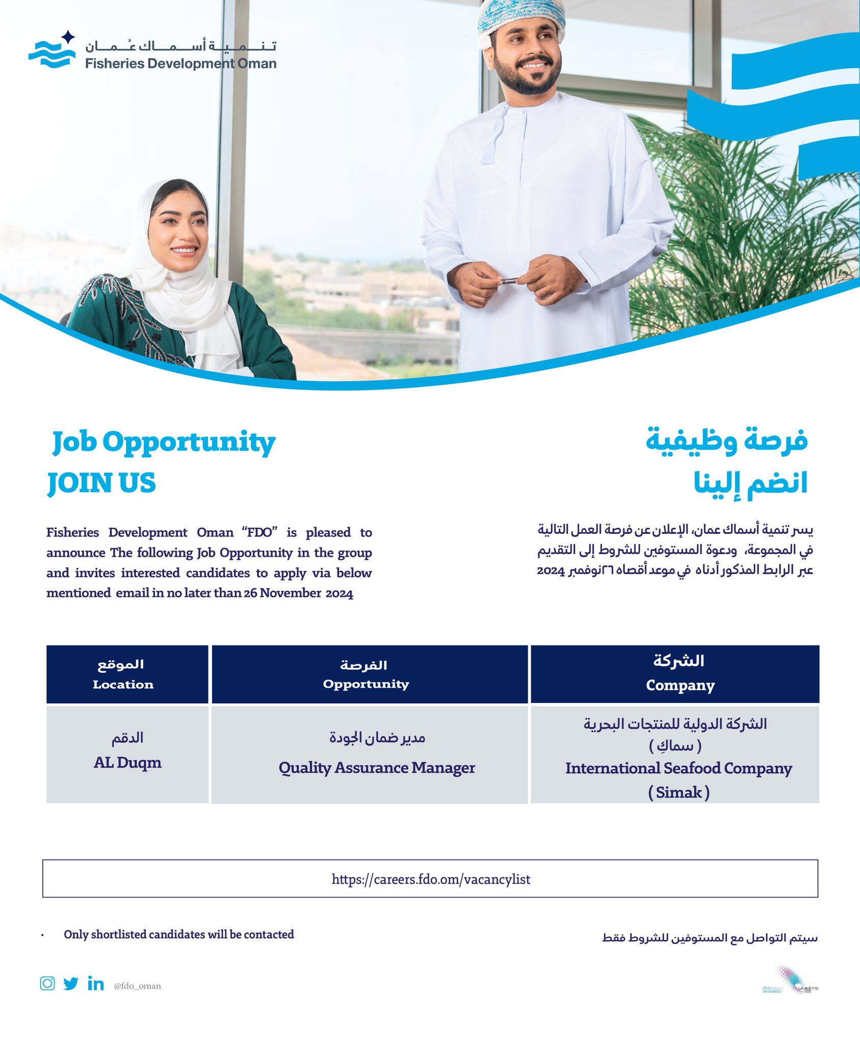 مجموعة تنمية أسماك عمان - فرصة وظيفية