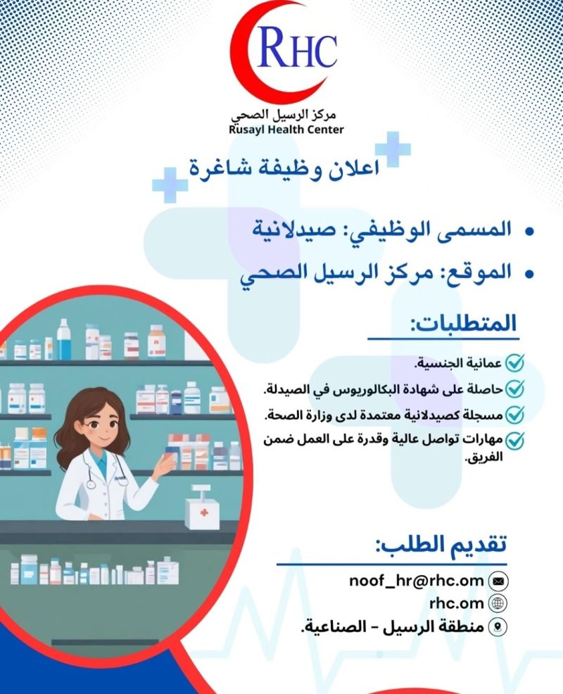 مركز الرسيل الصحي - وظيفة شاغرة ( صيدلانية )
