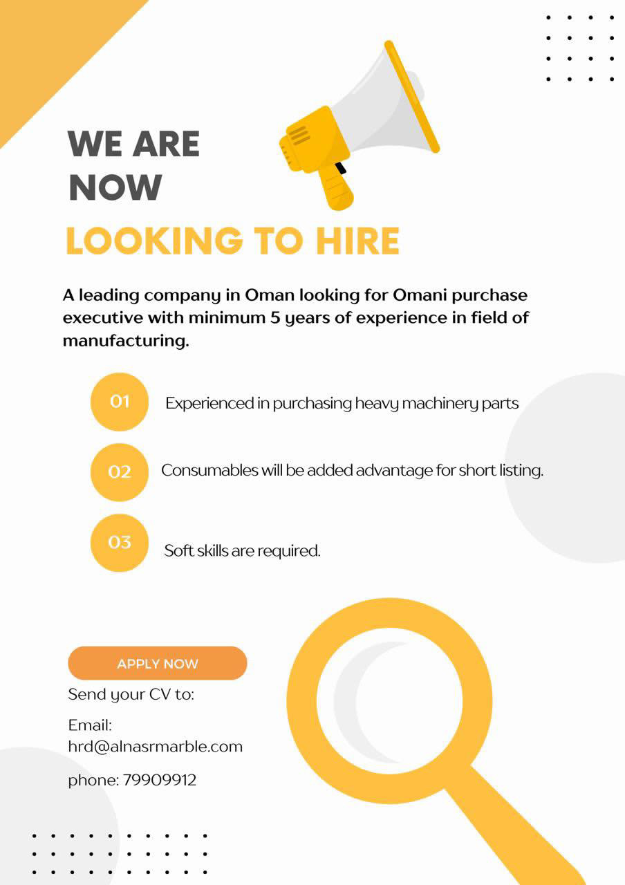 احدى الشركات الرائدة - وظيفة شاغرة ( purchase executive )