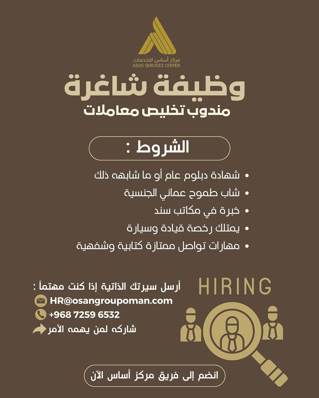 مركز أساس للخدمات - وظيفة شاغرة ( مندوب تخليص معاملات )