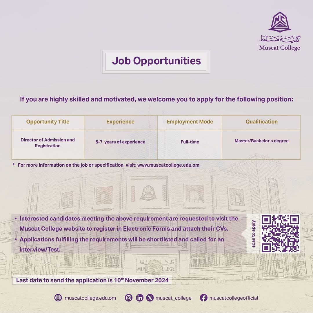 كلية مسقط - وظيفة شاغرة ( Director of Admission and Registration )
