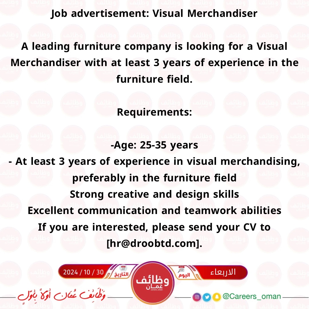 احدى شركات الاثاث الرائدة - وظيفة شاغرة ( Visual Merchandiser )