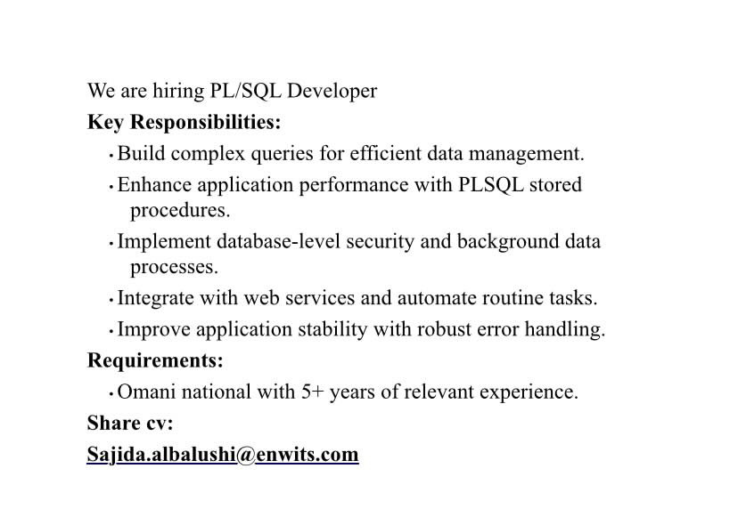 احدى الشركات الرائدة - وظيفة شاغرة ( PL/SQL Developer )