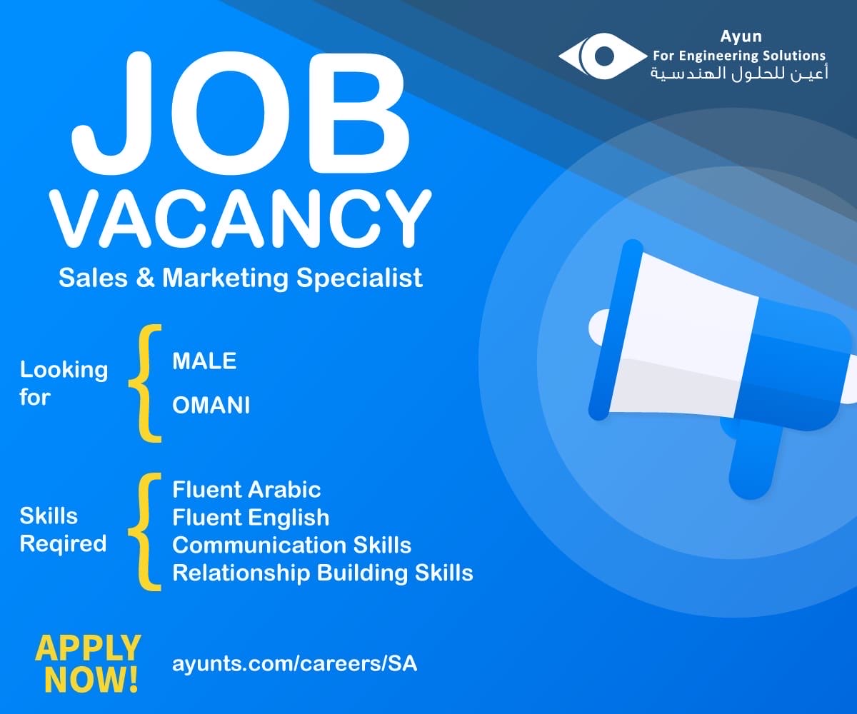أعين للحلول الهندسية - وظيفة شاغرة ( Sales & Marketing Specialist )