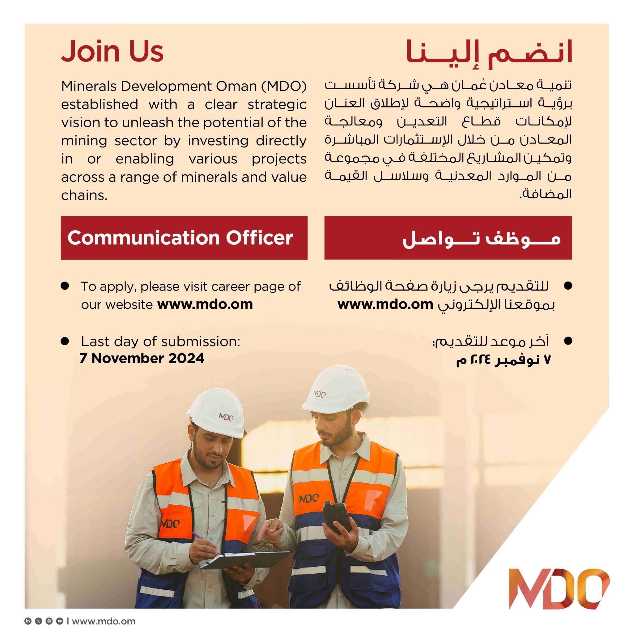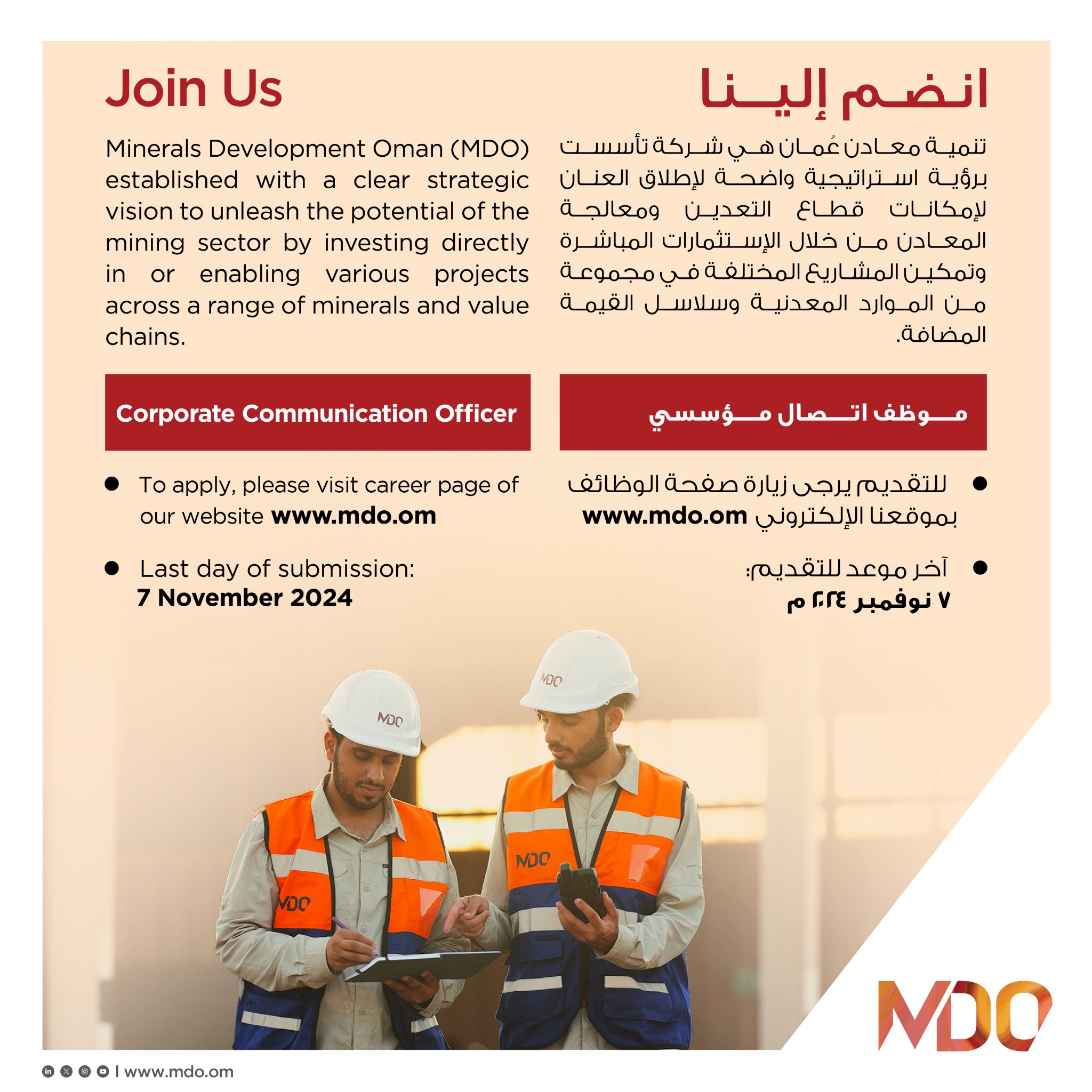 شركة تنمية معادن عمان - وظيفة شاغرة ( موظف اتصال مؤسسي )