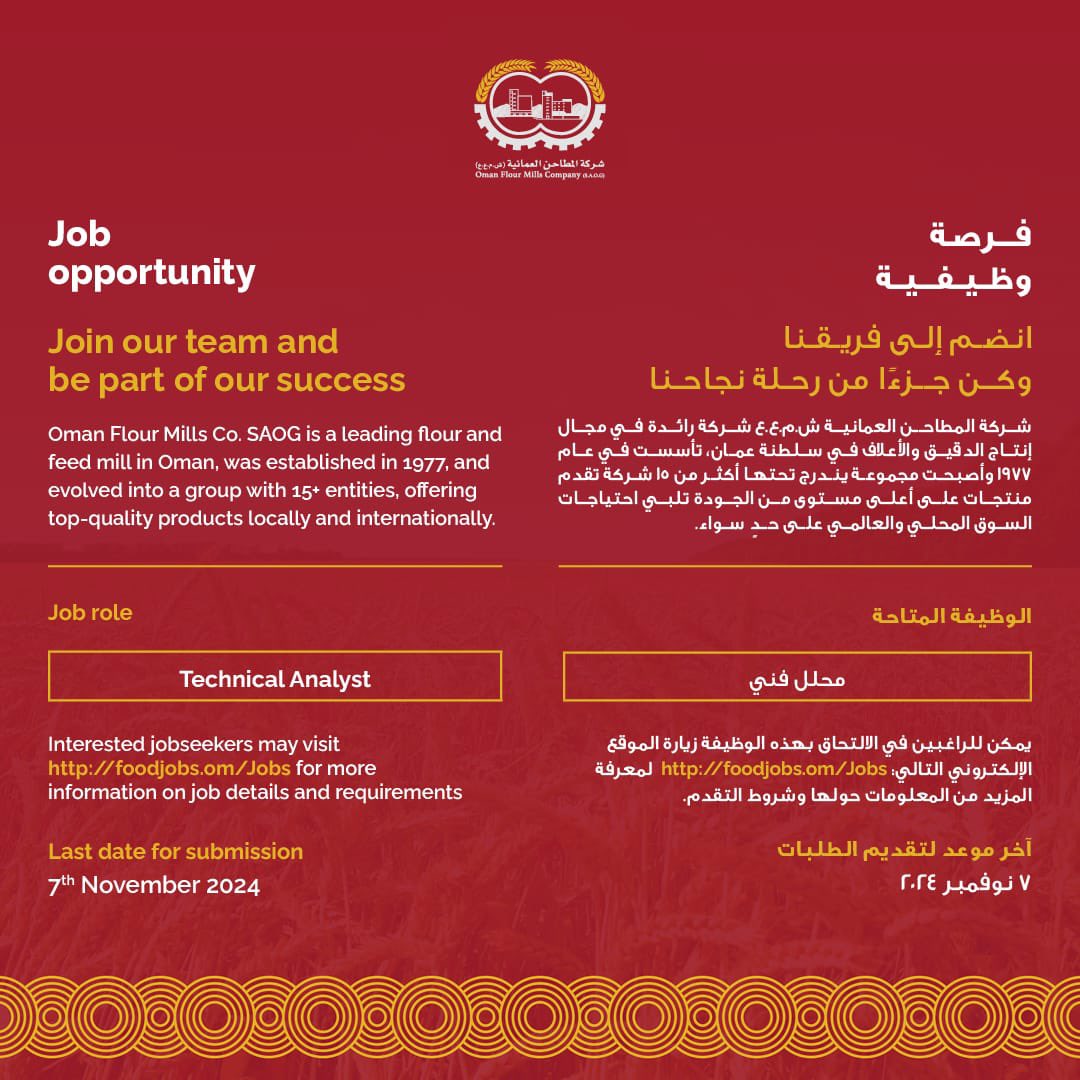 شركة المطاحن العمانية - وظيفة شاغرة ( محلل فني )