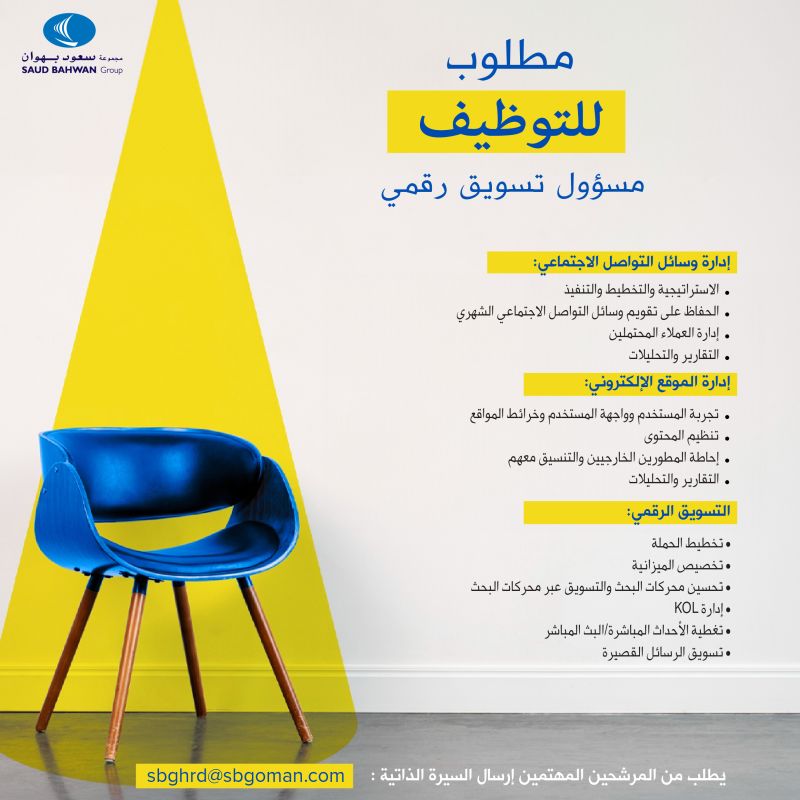 مجموعة سعود بهوان - وظيفة شاغرة ( مسؤول تنفيذي للتسويق الرقمي )
