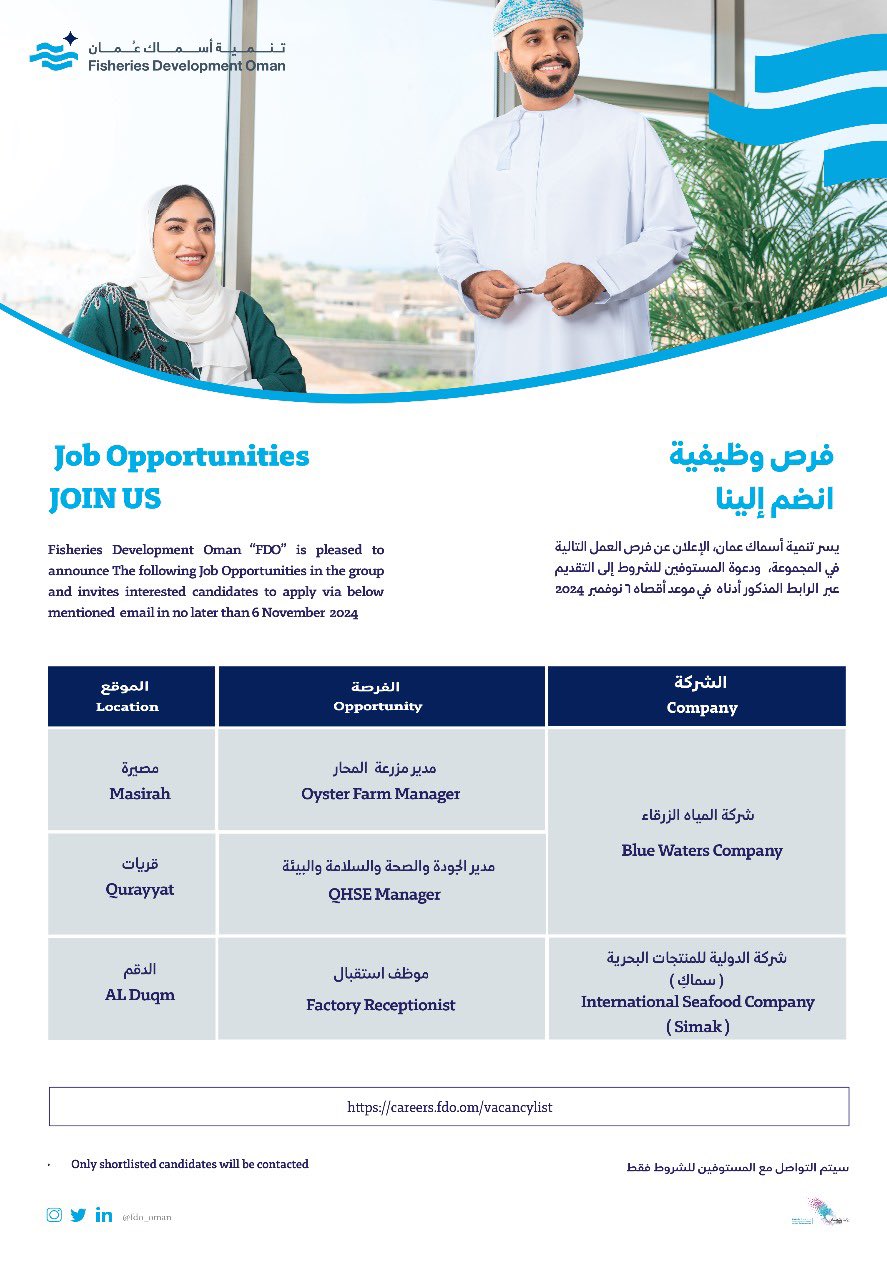مجموعة تنمية أسماك عمان - فرص وظيفية
