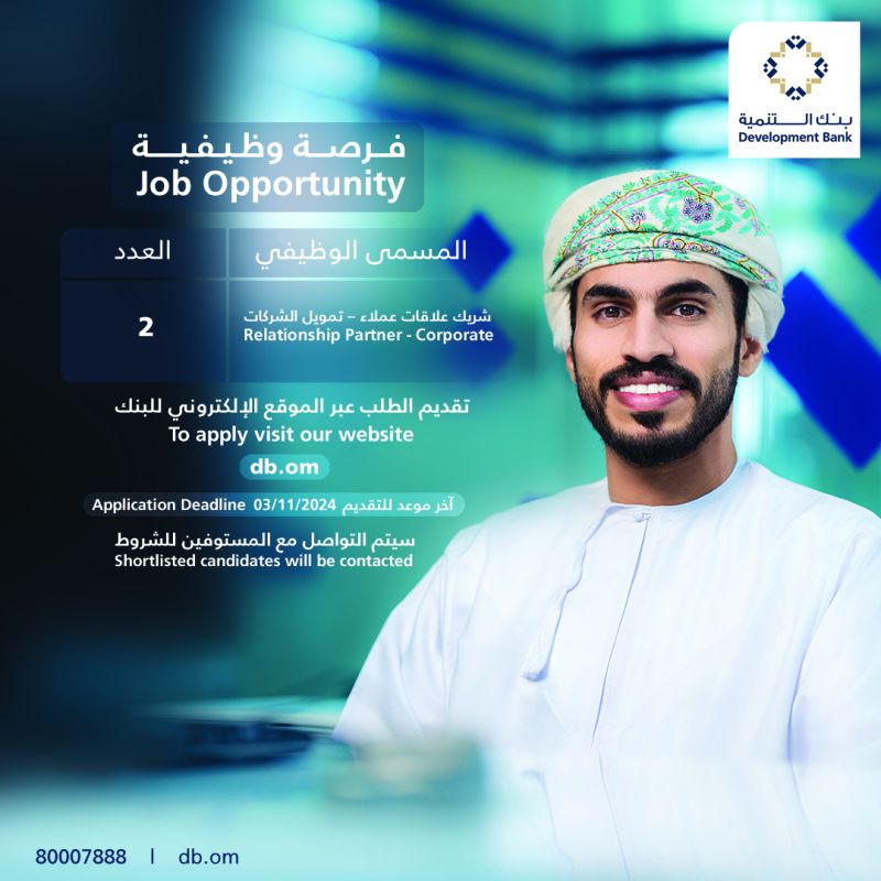 بنك التنمية - وظيفة شاغرة ( شريك علاقات عملاء - تمويل الشركات )