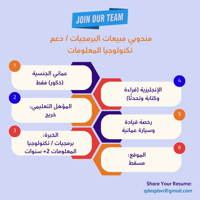 احدى الشركات الرائدة - وظيفة شاغرة ( مندوبي مبيعات البرمجيات / دعم تكنولوجيا المعلومات )