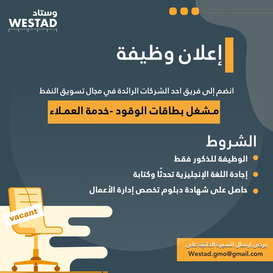 شركة رائدة في مجال تسويق النفط - فرص وظيفية ( مشغل بطاقات الوقود + موظف استقبال )