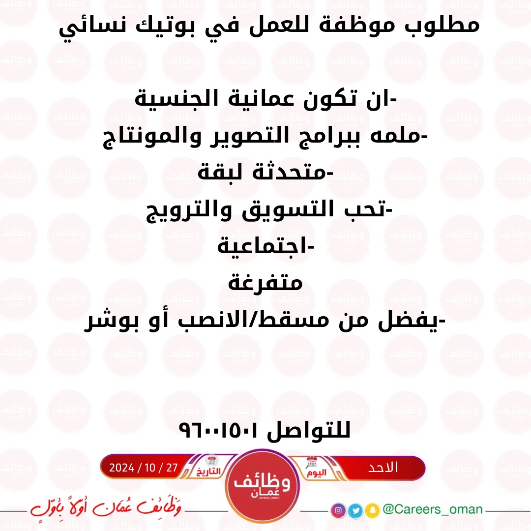 بوتيك نسائي - وظيفة شاغرة ( موظفة )