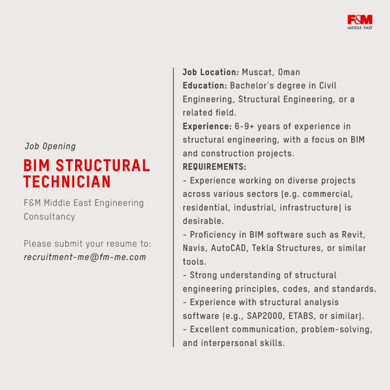 شركة اف اند ام الشرق الأوسط للإستشارات الهندسية - وظيفة شاغرة ( BIM STRUCTURAL TECHNICIAN )