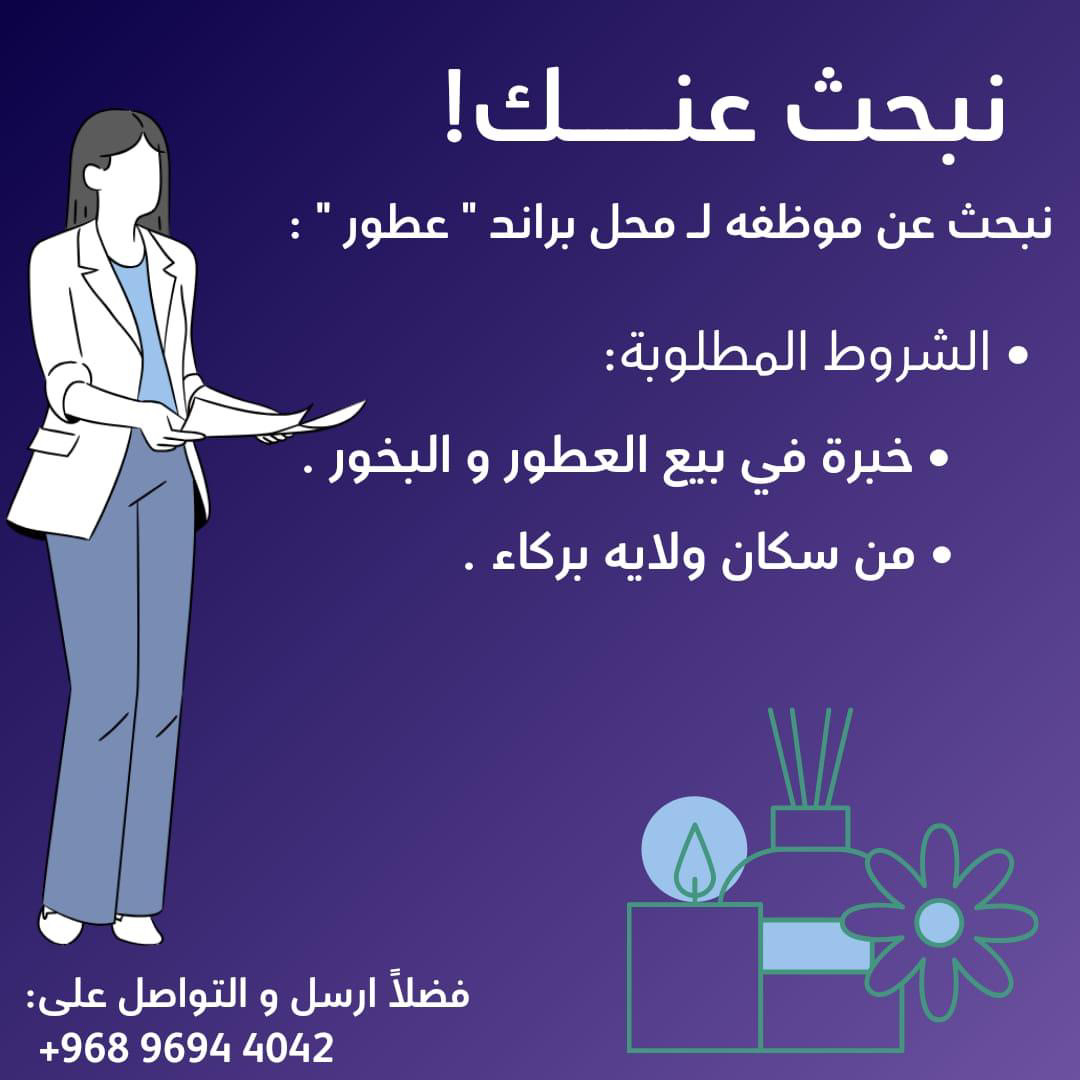 محل براند عطور في بركاء - وظيفة شاغرة ( موظفة )