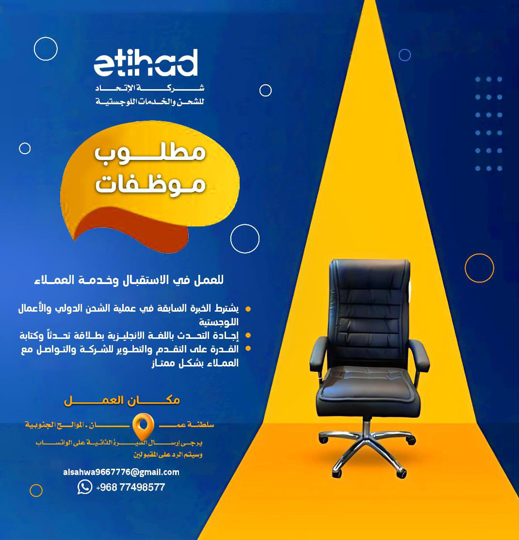 شركة الاتحاد للشحن والخدمات اللوجستية - فرص وظيفية ( موظفات في الاستقبال وخدمة العملاء )