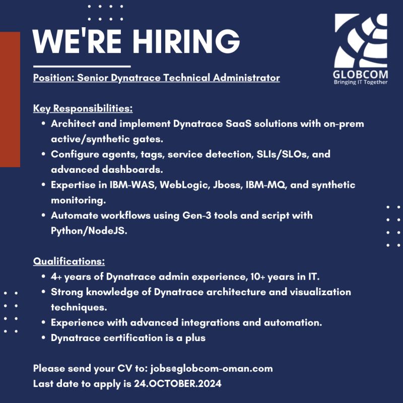 شركة Global Computer Servic - وظيفة شاغرة ( Senior Dynatrace Technical Administrator )