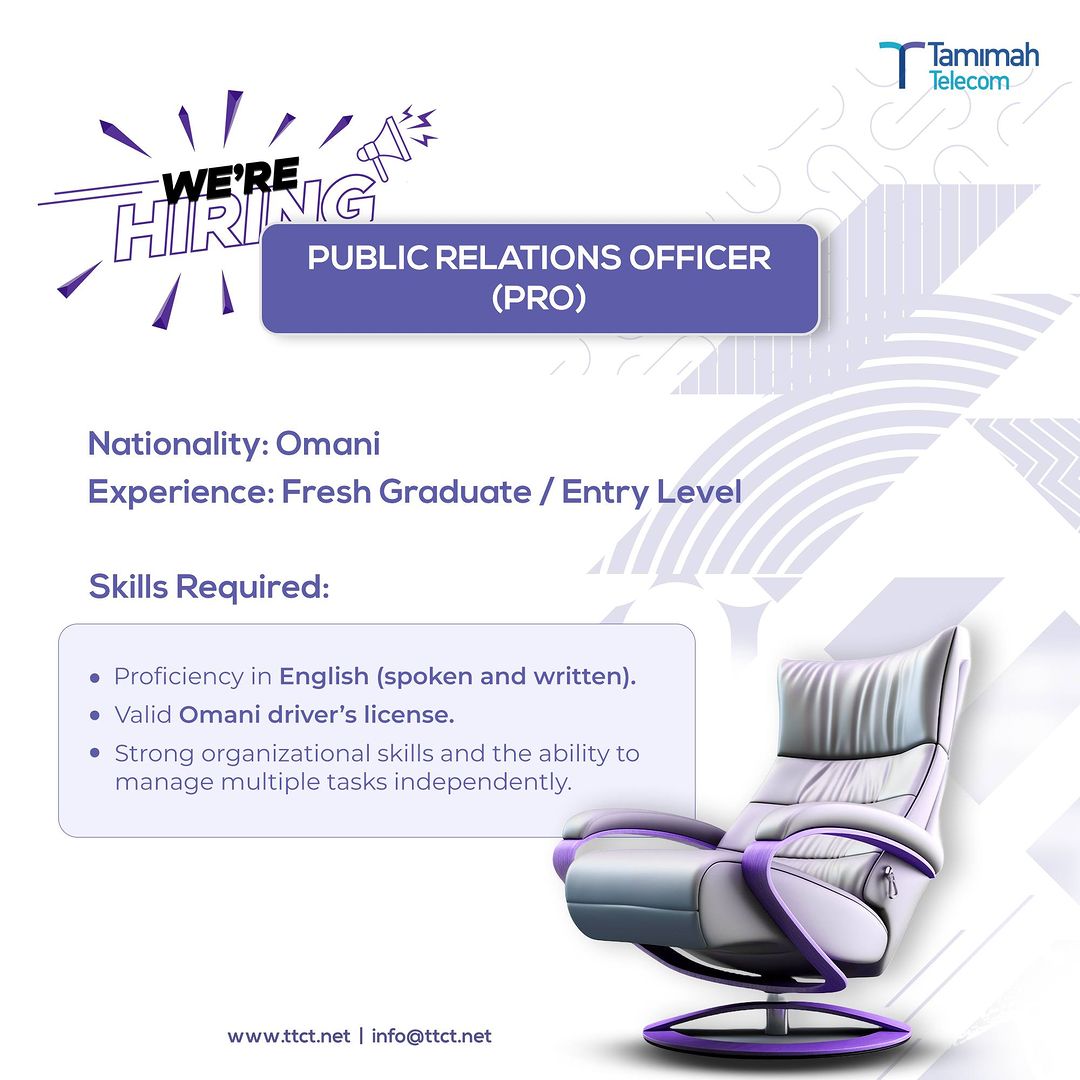 شركة تميمة للإتصالات - وظيفة شاغرة ( PUBLIC RELATIONS OFFICER )
