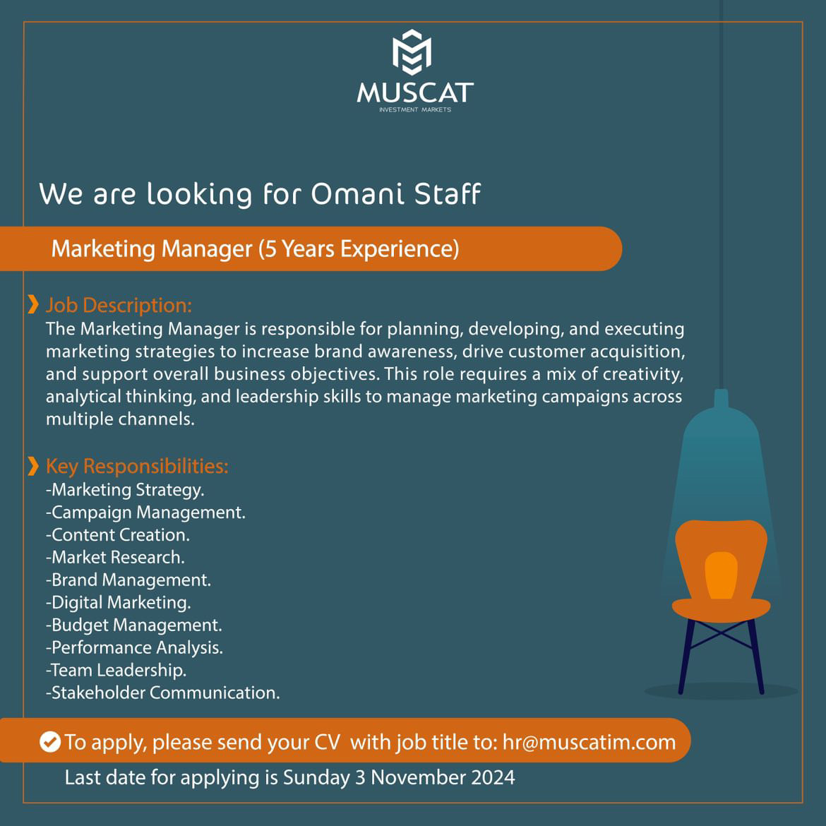 شركة أسواق مسقط للاستثمار - فرصة وظيفية ( مدير تسويق )